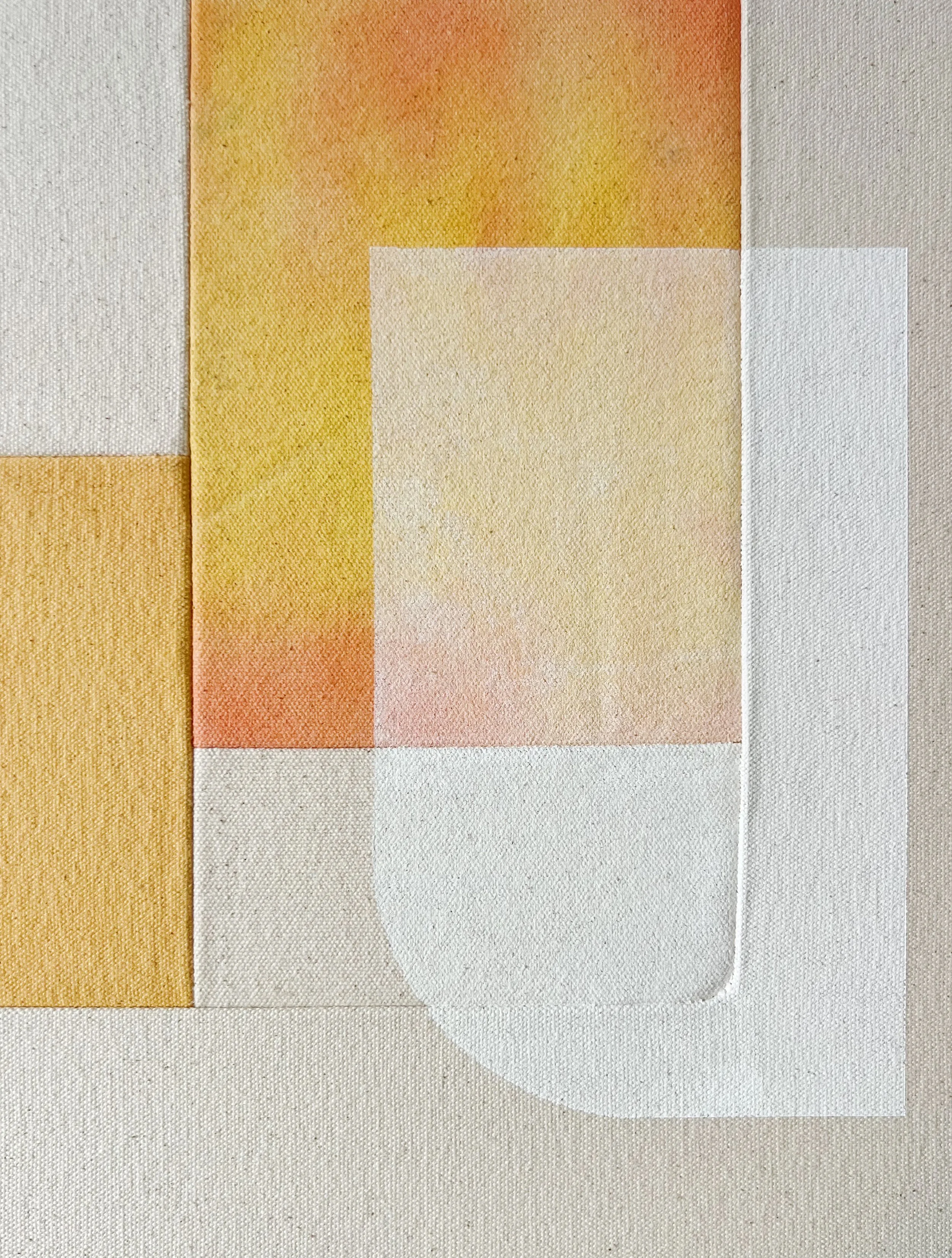 These compositions retain formal structure: stitched edges, measured shapes, but embrace fluidity through softened color, overlapping forms, and intuitive decisions.